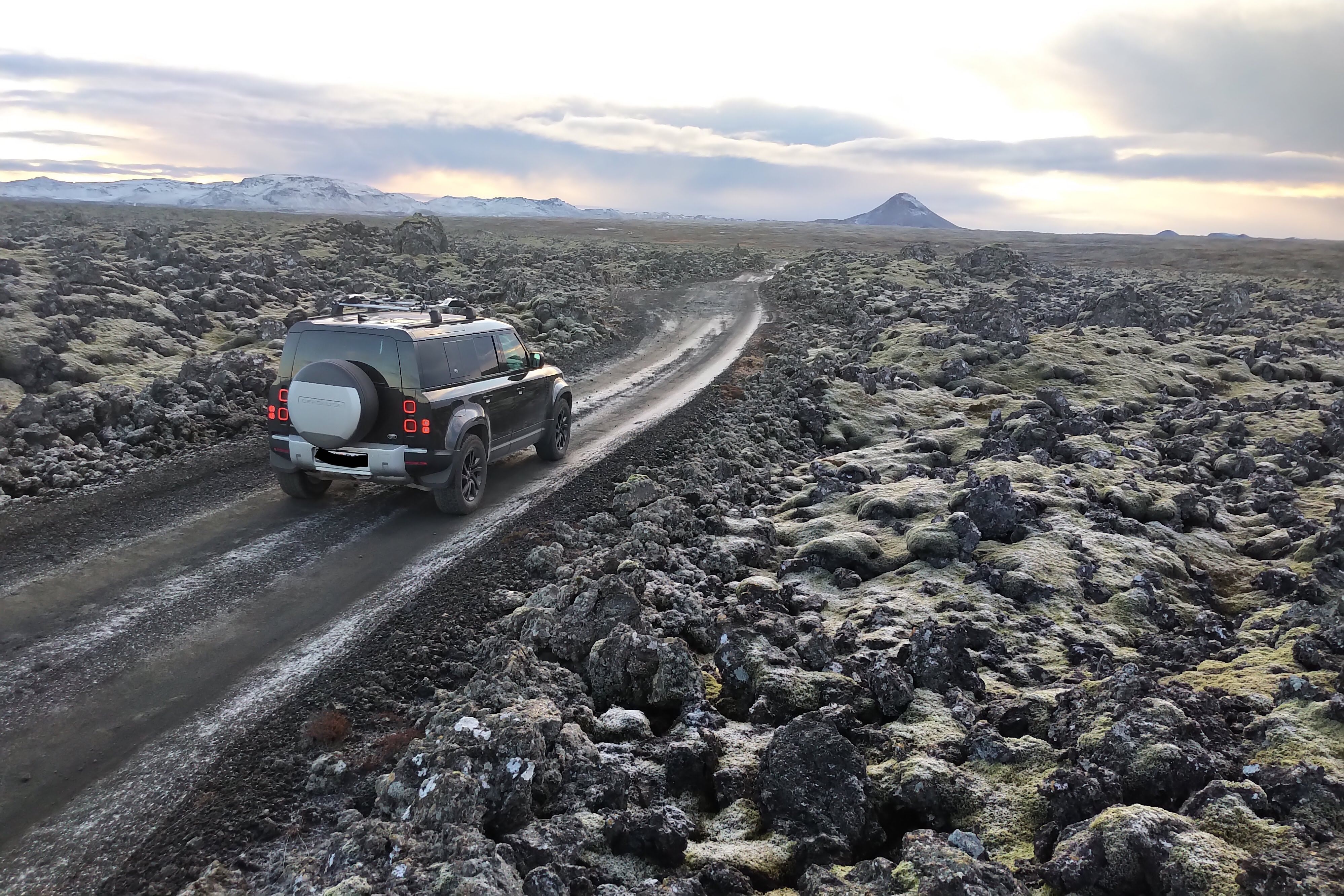 Driving a Land Rover Defender in Iceland is an unforgettable experience. The new Defender is a luxurious and reliable vehicle that has been used for off-roading adventures all over Iceland with great success. With its comfortable air suspension, beautiful design and powerful engine, the Defender can handle Iceland's challenging terrain with ease. The vehicle's high ground clearance and excellent traction make it a perfect fit for Iceland's rugged landscapes.