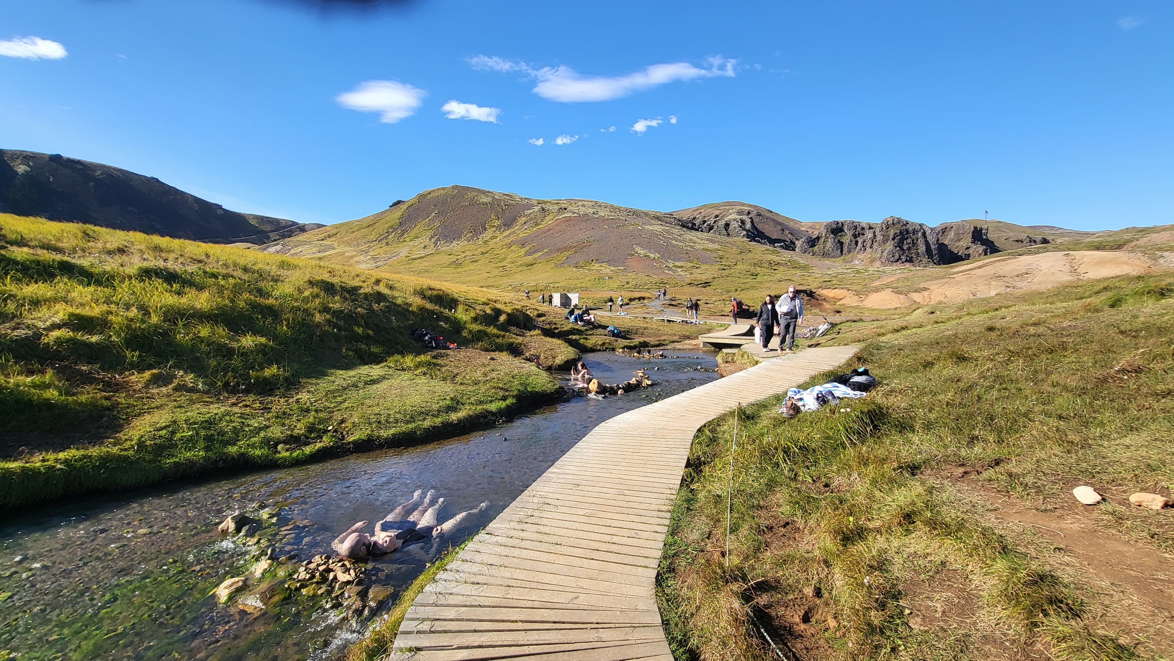 We then take you on our 4x4 vehicle to the backroads of Reykjadalur Valley. We then hike to Reykjadalur valley and bathing in its hot springs is an incredible experience that showcases the unique natural wonders of Iceland. The hike itself is relatively easy, taking around 20 - 30 minutes to reach the valley.