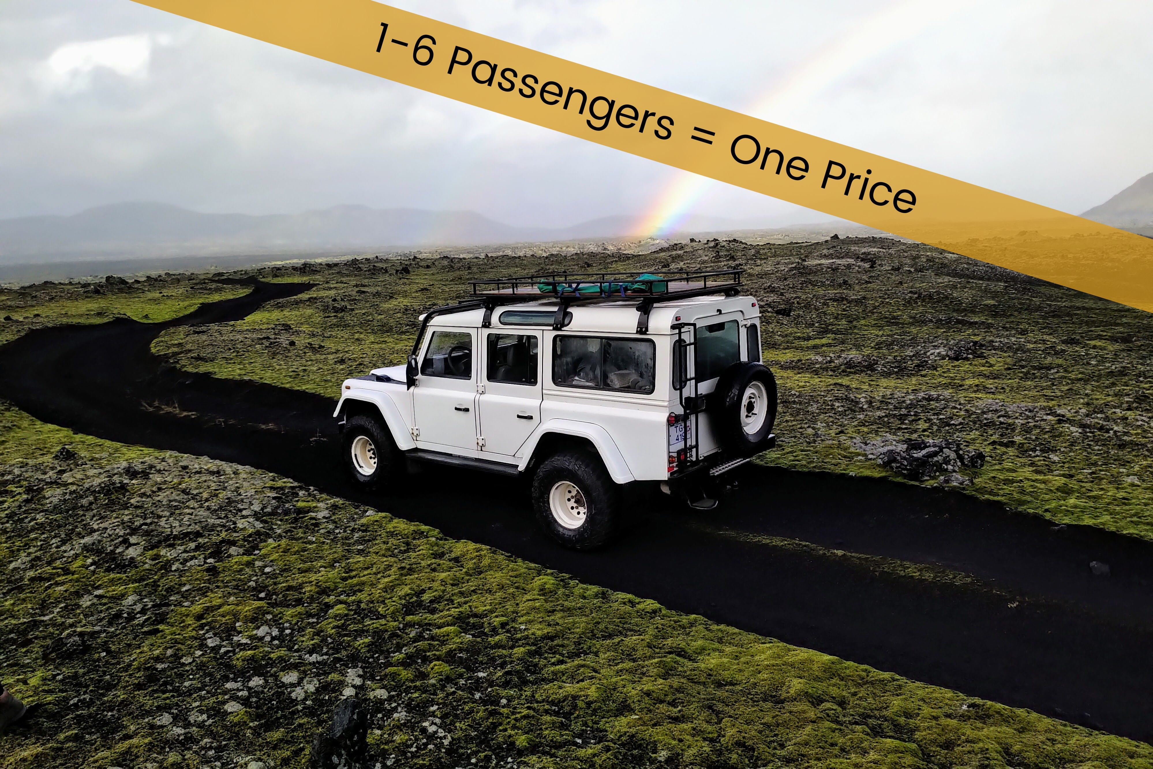 This tour includes private experience in less than 5 hours. Bathing in hot natural springs, off-roading on modified 4x4 vehicles through rugged backroads before heading back to Reykjavik. One price up to six people.